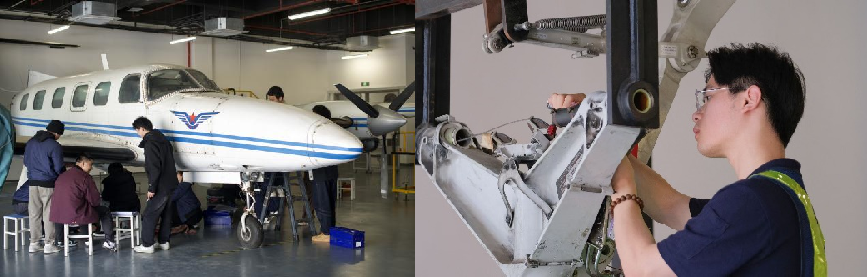 近3年来,工训中心已积极开展多轮“产教融合”模式机务维修人员执照培训。对标梳理民航局有关机务运维岗位胜任能力要素矩阵,依托省级民航机务工程实验教学中心,完成了基于0BE的维修实训大纲,有效实施“飞机维修实训教学六步法”。并在民航局批准的147维修培训机构框架下,规范开展在校生TA类别执照培训,保障近1000名学生在毕业时取得“航空器维修人员执照”,有效促进相关专业学生高质量就业。